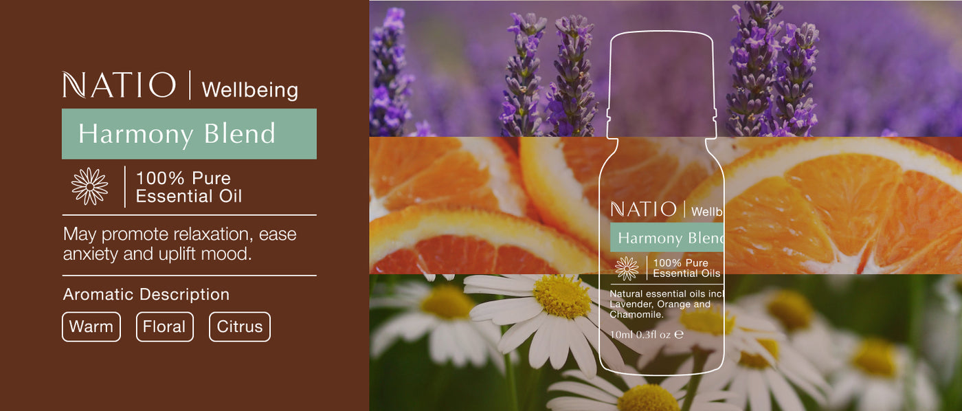 Gently extracted from aromatic botanicals, this soothing blend of 100% pure and natural essential oils calls on the likes of Lavender, Orange and Chamomile to help restore balance and wellbeing. Pleasantly sweet and floral in scent, the individual oils work in aromatic synergy to help calm and uplift the body and mind. Part of Natio's Wellbeing Pure Essential Oils range; made with pure natural essential oils from around the world, bottled in Australia.