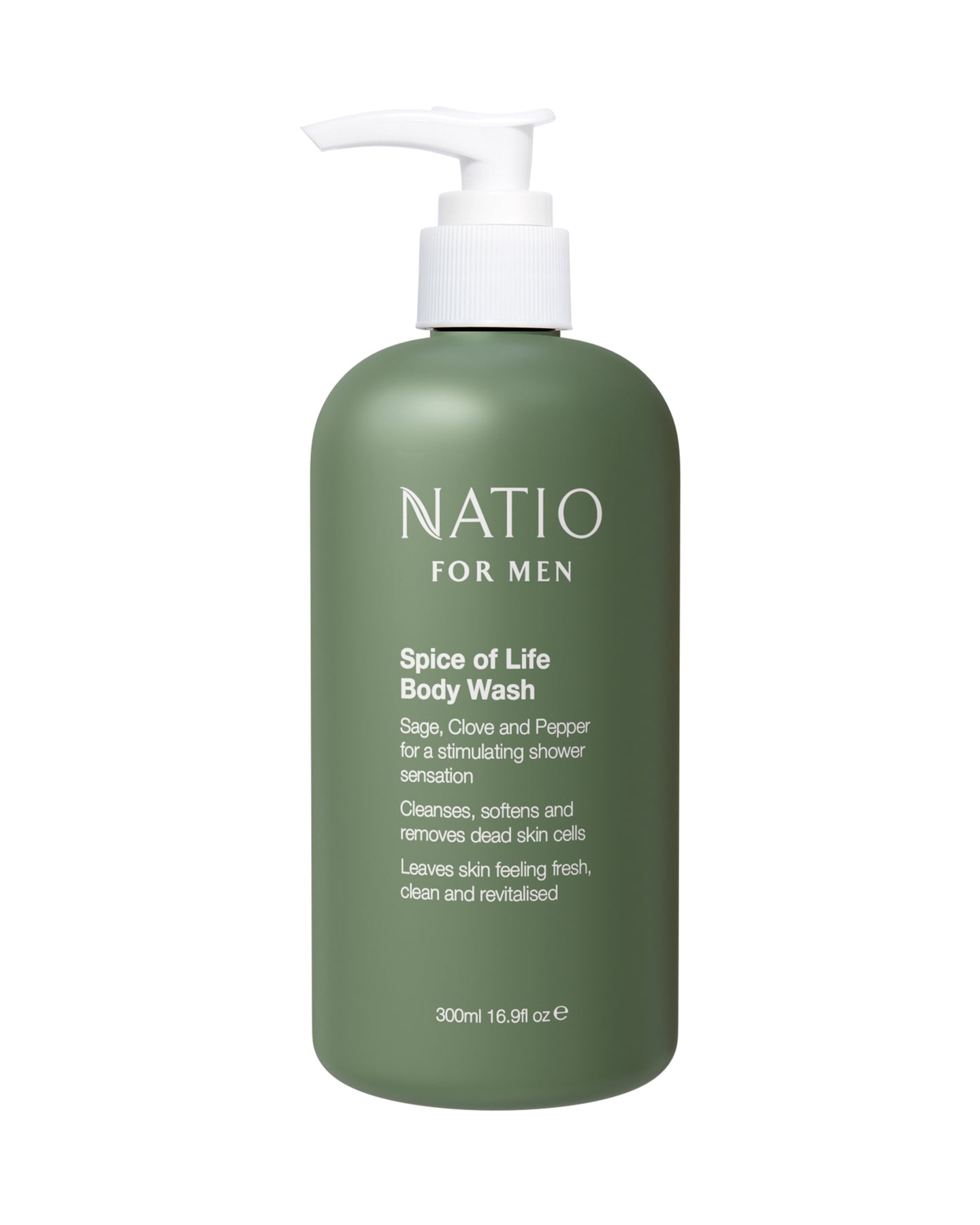 Elevate and energise his daily shower regimen with this vitalising cleansing gel, formulated with purifying plant extracts and aromatic essential oils. 'Fresh' gift set includes a Limited edition Natio for Men Spice of Life Body Wash 300ml plus complimentary Natio body loofah, presented in a Natio gift box.