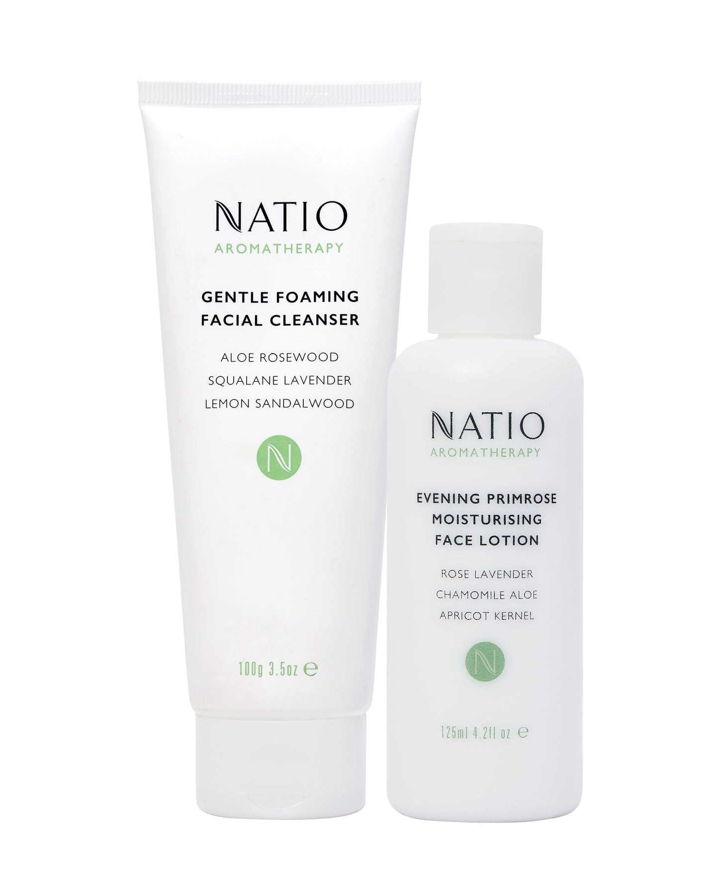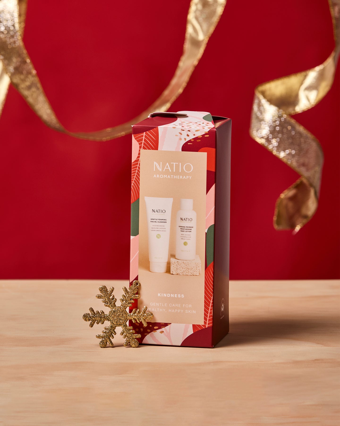 Purity and nurturing care, beautifully boxed. 'Kindness' gift set contains a full size Aromatherapy Gentle Foaming Facial Cleanser and Evening Primrose Moisturising Face Lotion, presented in a complimentary gift box.
