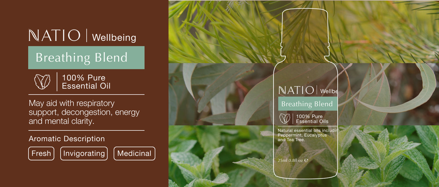 Breathe deep and slow down with this refreshing blend of 100% pure and natural essential oils. Designed for diffusing, massage or inhalation. Part of Natio's Wellbeing Pure Essential Oils range; made with pure natural essential oils from around the world, bottled in Australia.